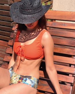 Corpiño Ibiza Alto Estampado + Bombachon Alto con Tiras Regulables